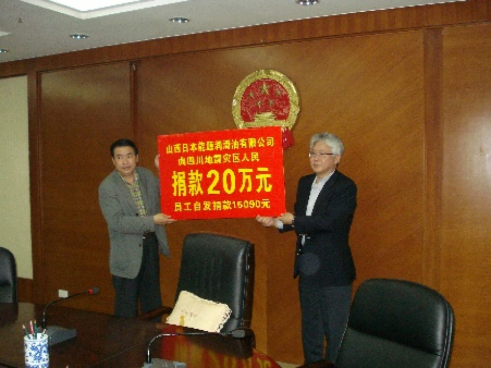 新日礦、日本能源、日礦金屬為四川省地震受災(zāi)者捐款1000萬日元。山西日本能源捐款20萬元,并為災(zāi)區(qū)免費贈油,員工也積極籌善款。